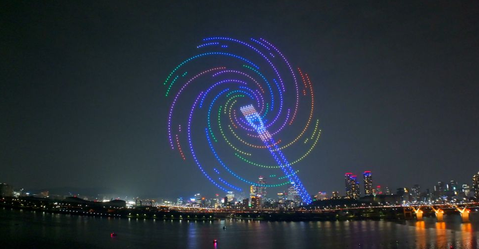 청춘의 밤하늘을 수놓는 서울 뚝섬의 환상적인 드론 쇼!