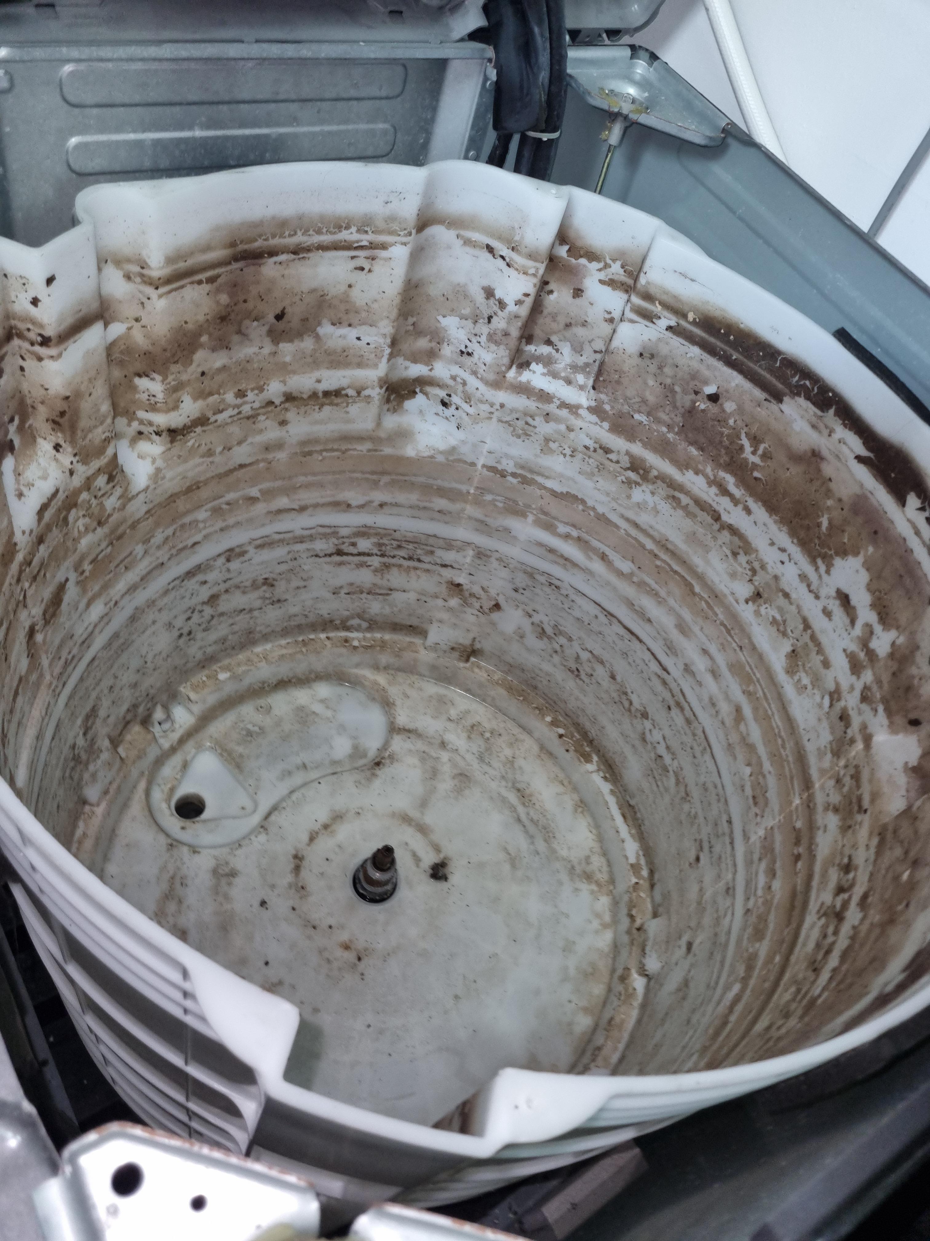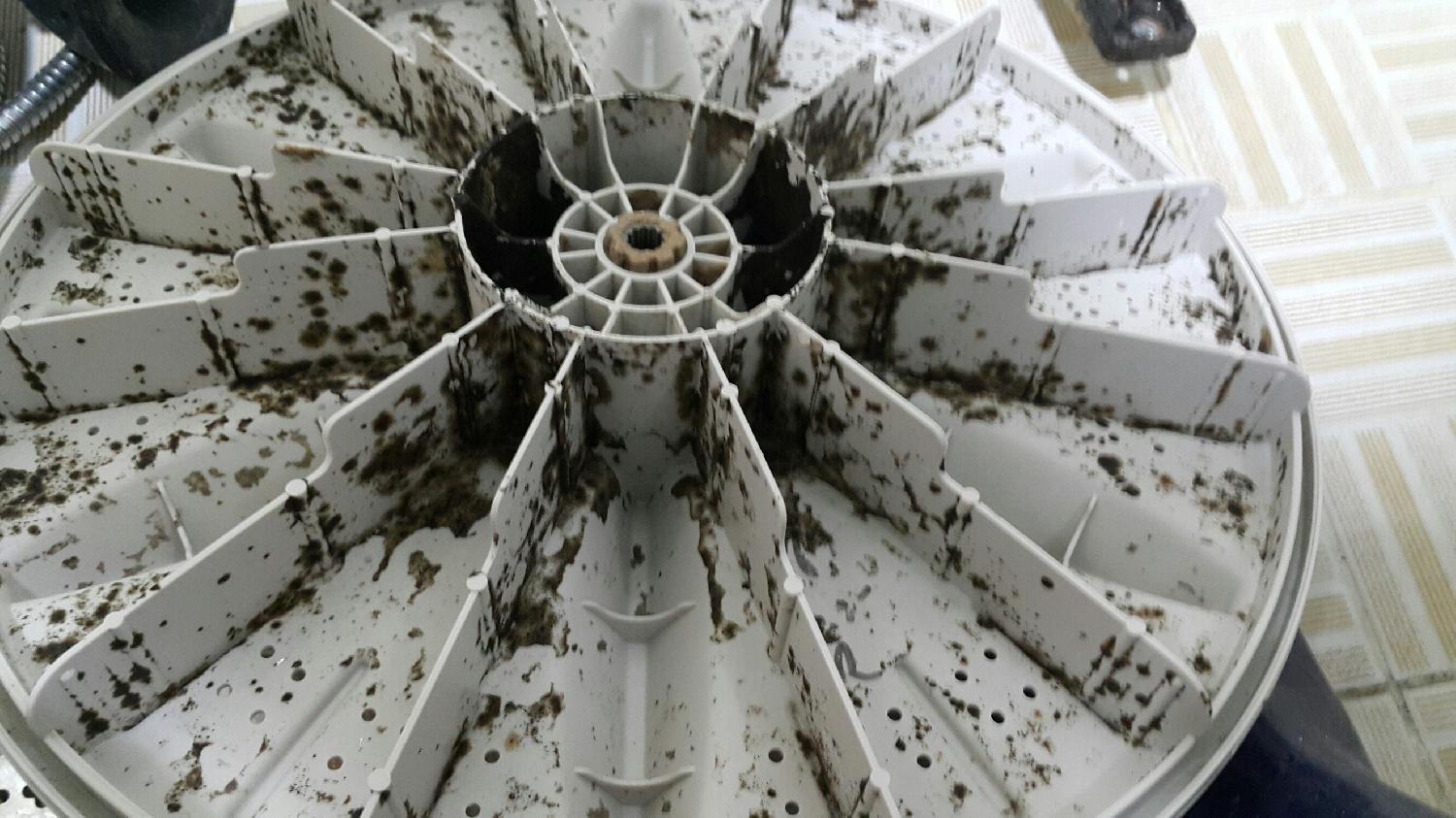 - 세탁기 속 오염이 얼마나 심각한지, 실제 사진으로 확인하고 분해청소의 필요성을 알 수 있습니다.